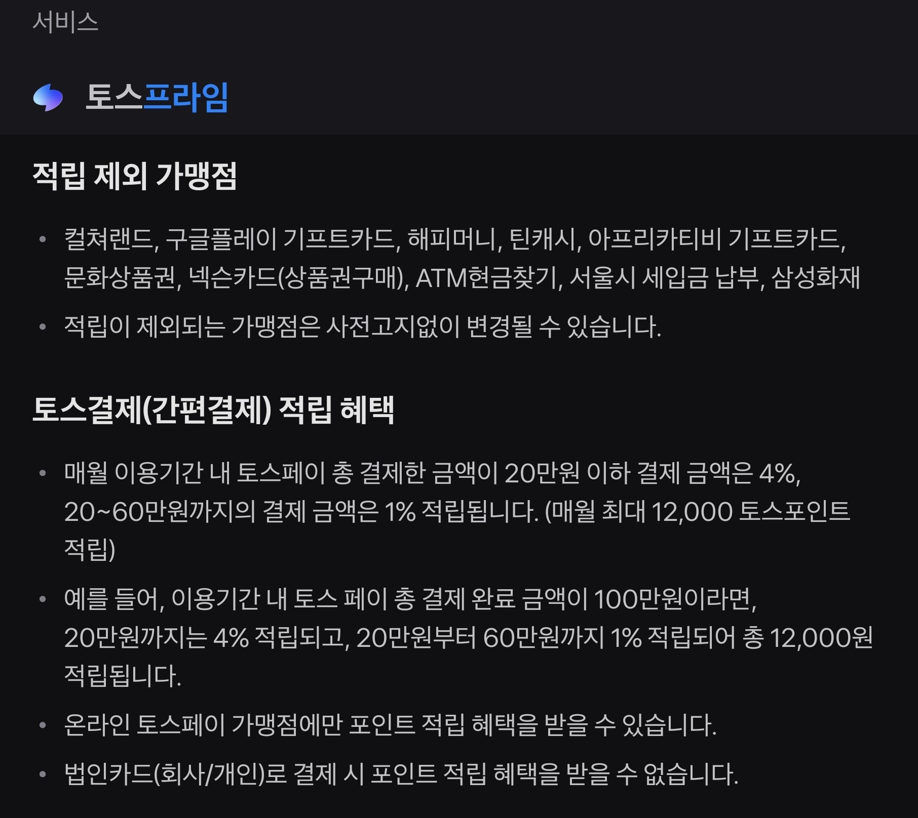20만 원 초과 시 60만 원까지 1% 적립 - 40만 원 사용 시 4,000원 적립