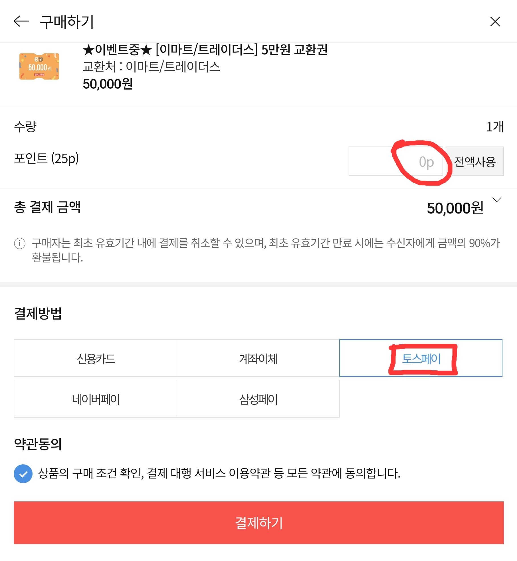 기존 토스를 이용 중이시라면 장 보러 가서 상품권 구매할 때 토스포인트를 유용하게 쓸 수 있습니다.